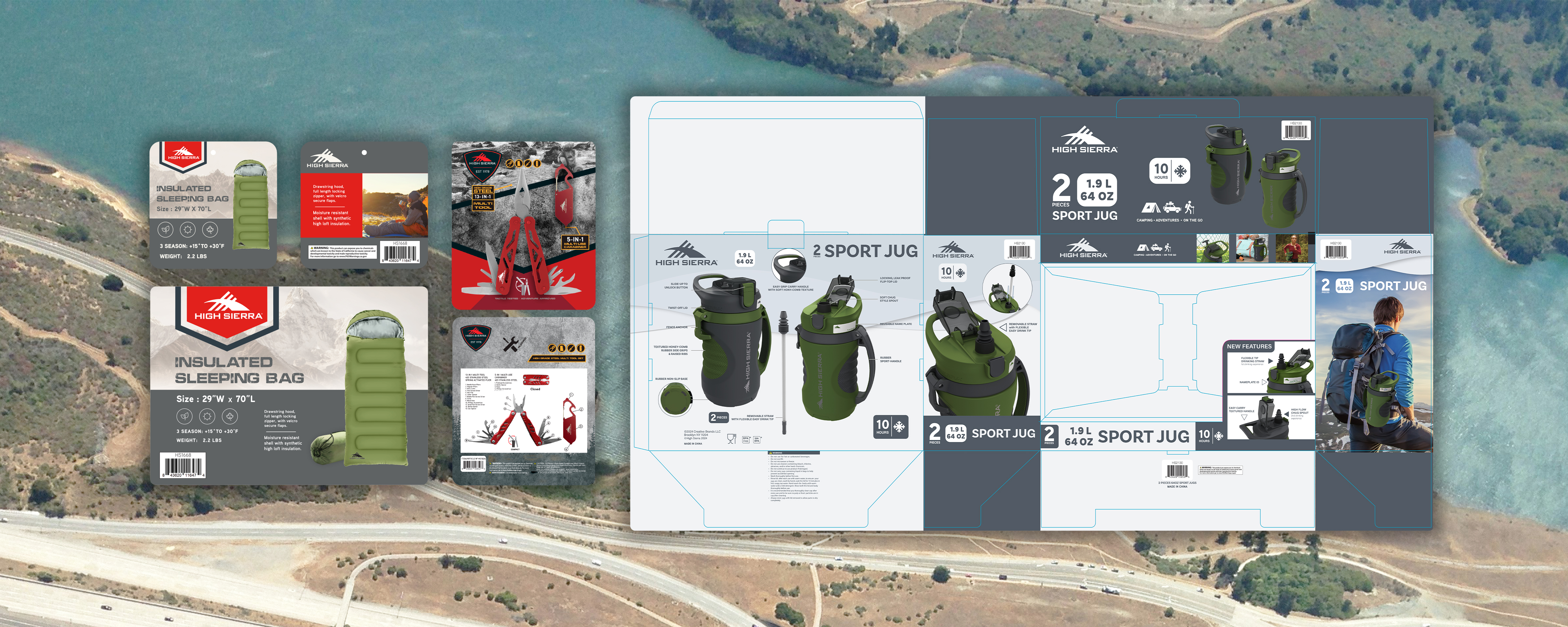 High Sierra is celebrated for its rugged, high-quality backpacks and camping gear. When the brand expanded into complementary accessories, we stayed true to its adventurous spirit by designing a range of products including multi-tools, water jugs, and waterproof speakers. Each product was crafted to reflect the durability and functionality that High Sierra is known for, enhancing the outdoor experience for every explorer.