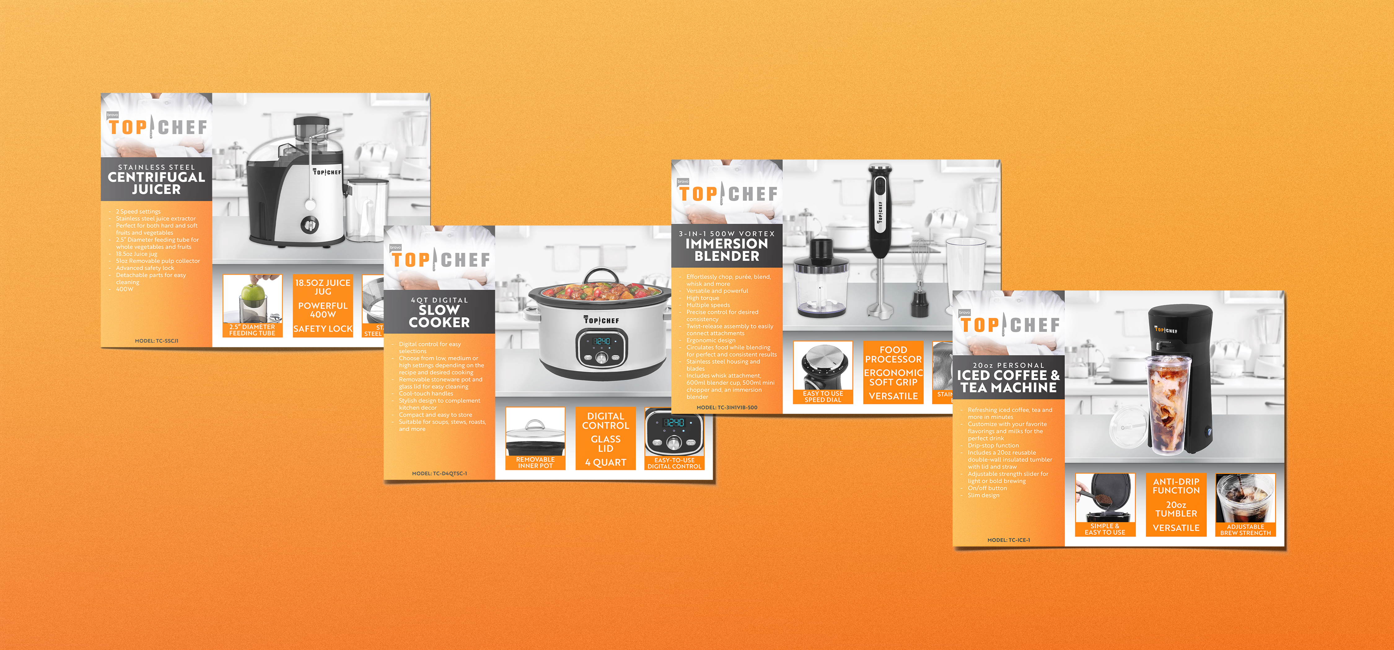 Collaborating directly with NBC Universal, we launched Top Chef’s inaugural line of kitchen appliances. Staying true to the Bravo show’s brand, we crafted premium appliances paired with bold packaging and advertising that captured the intensity and passion of the chefs in competition.
